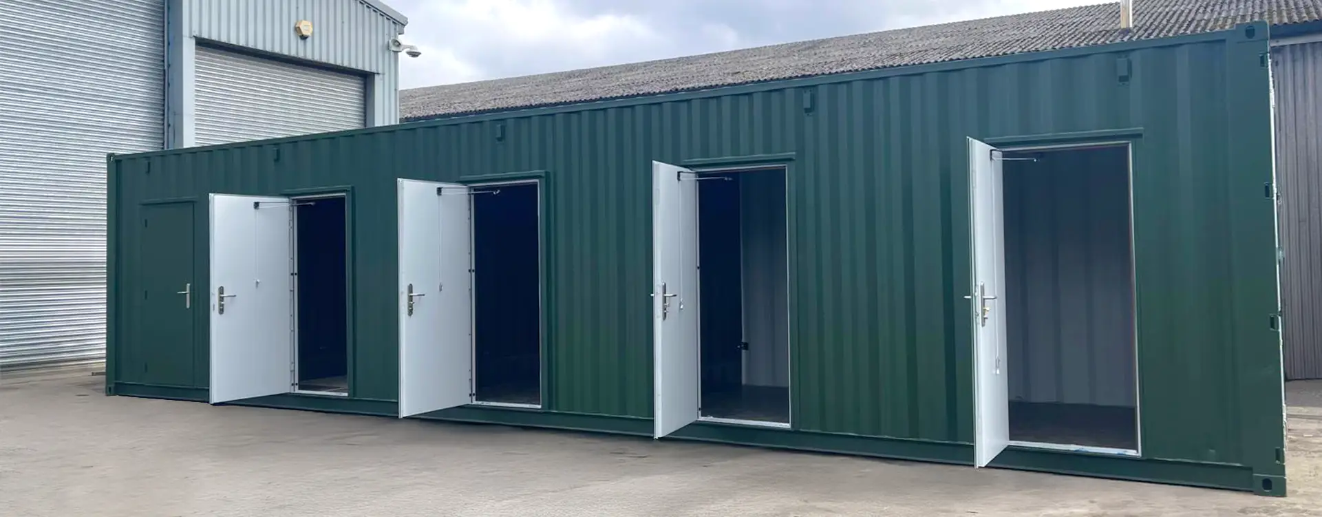 A multi store container unit is a converted shipping container that has been divided into smaller, individual storage spaces. Instead of one large container with a single cargo door, each section is accessed via its own secure personnel door.